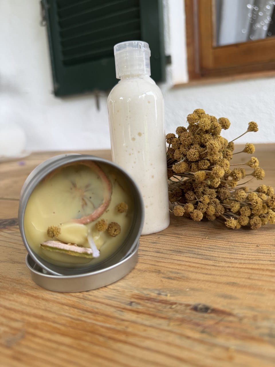 El Champú de Santolina y Sal nace en Menorca, donde la brisa marina acaricia los campos de santolina y la tradición artesanal sigue viva en cada gesto.